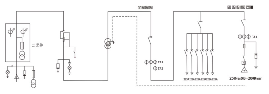 2、高压侧供电系统,可布置成环网供电、终端供电、双电源供电等多种供电方式,也可用户定制,还可装设高压计量元件,满足高压计量的要求。高压柜具有对变压器短路、过负荷等多种保护功能;